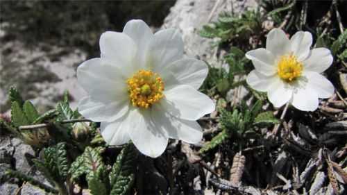 Альпийские цветы адаптировались к жизни в исключительно холодных условиях, и большинство из них может приспосабливаться к очень скудной почве или же к полному ее отсутствию. Однако такие растения, как правило, не могут переносить длительные периоды пребывания в дождливых условиях. Зимой они обычно находят защиту под снегом, а в другие времена года, когда возможно выпадение обильных осадков, они приспосабливаются путем расположения листьев, которые помогают отводить воду и не дают ей собираться у основания растения.