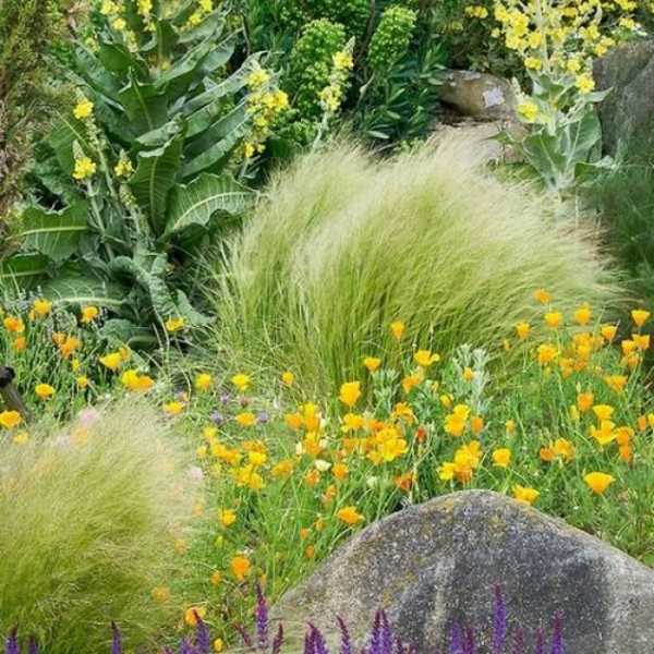 При создании клумбы из многолетних цветов нельзя обойти вниманием злаковые растения. Они остаются очень привлекательными в течение всего сезона и хорошо сочетаются со многими многолетними цветами.