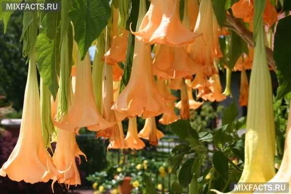 Бругмансия — разновидность древесного тропического кустарника из рода Пасленовые. Растение выделяется необычными трубообразными бутонами, обладающими белоснежным ярким оттенком, а также овальными листовыми пластинами, покрытыми едва заметным пушком. Бругмансия широко распространена в большинстве стран Южной Америки, в теплых и влажных регионах США. За счет быстрой приспосабливаемости к новым условиям, данный цветок культивируется по всему миру как в открытом, так и в закрытом грунте, например, в оранжереях.
