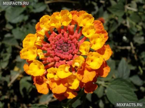 Лантана — двудольное цветковое растение, включенное в семейство Вербеновые. В природе встретить лантану можно в тропических регионах Южной Америки, Африки и Азии. Было насчитано около 130 видов лантаны. Каждый из них представляет собой кустарник или полукустарник с ветками, покрытыми мелкими шипами. Цветоносы собраны в головковидные соцветия полутреугольной формы. Листки расположены супротивно, имеют специфический резкий запах. Оттенок лепестков невероятно разнообразен: розовый, желтый, оранжевый, красный, лиловый.