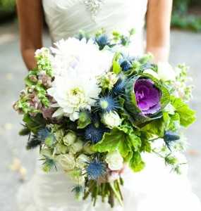 Брассика – не часто, но, все таки используется в свадебных букетах, от флориста требуется особое мастерство и отменный вкус для того чтобы брассика смотрелась уместно в букете.
