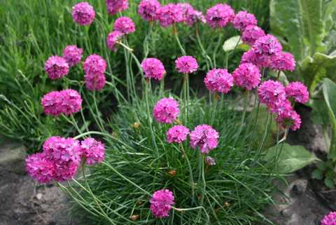 Эти цветы цветут все лето на даче, их высота не превышает 15 см. Эти растения с большим успехом используют для оформления каменистых садиков, клумб и в качестве украшения палисадников. Армерия хорошо переносит зимы, на одном месте растёт в течение пяти лет. Цветы окрашены в розовый, лиловый, красный оттенки.