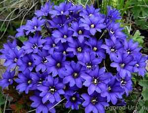 Соцветия этого многолетника представляют собой небольшие колокольчики синего цвета. Зачастую горечавку используются для оформления альпийских горок.