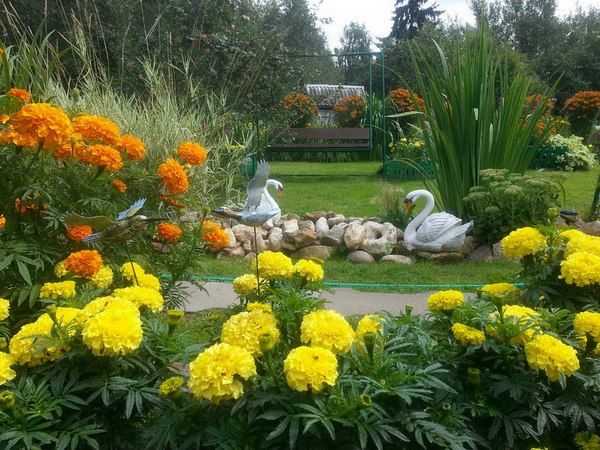 Один из фаворитов всех наших дачников – это бархатцы. Красота их легко объяснима благодаря разнообразию оттенков: от желтого до терракотового и даже коричневого. Нередко их высаживают вдоль бордюров, делая своеобразную «дорожку». Они неплохо себя чувствуют, как при частом дожде, так и при редком поливе.