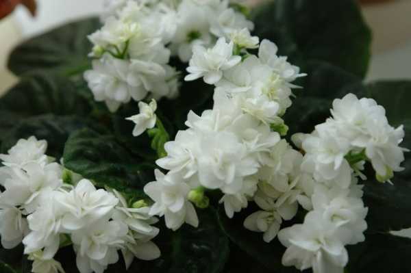 - На фото мило и нежно смотрятся фиалки. Они тоже могут иметь белый окрас, допустим, сорт «Белый кристалл».