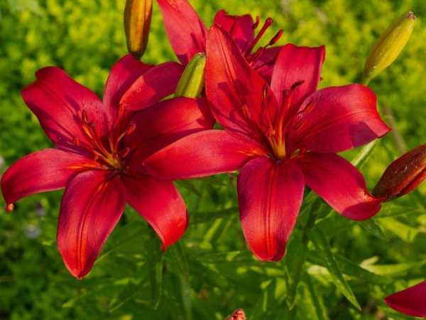 Лилии. Это красивые и нежные цветы, отличаются обильным цветением. Не требуют много внимания к себе, луковицы могут расти без пересадки до 5 лет. Для посадки рекомендуется выбирать солнечные места, защищенные от продувания.