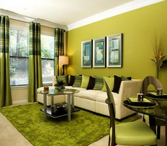 Эта гамма может использоваться не только в качестве дополнения, но и в общем тоне. Причем, чтобы добиться достаточно респектабельного вида зала или спальни, то стоит использовать осеннюю зеленую палитру именно при оформлении стен. Не исключается дополнение и более яркой, летней палитрой зеленого тона, при помощи которого можно расставить акценты.