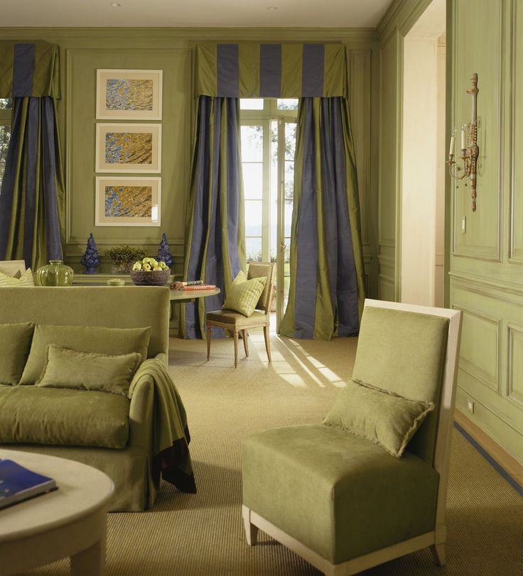 д. Но при выборе основного тона следует учитывать тип помещения. Если речь идет о зале, то допускаются более насыщенные и темные оттенки: оливковый, темно-зеленый, горчичный.