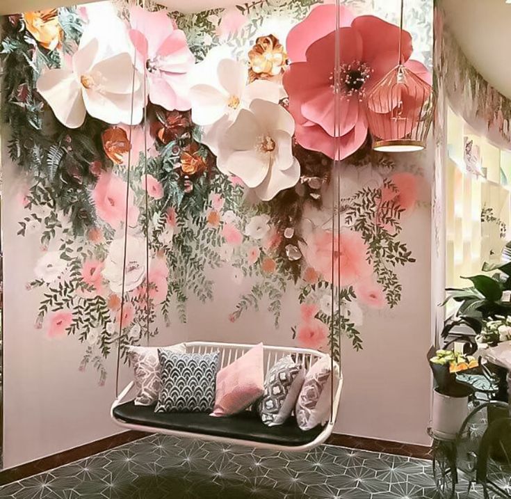 - украшение стены бумажным цветком