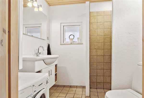 Душевая кабинка находится рядом с высоким окном, ведущим на балкон. Это позволяет обычное ежедневное купание превратить в ритуал купания в озере.