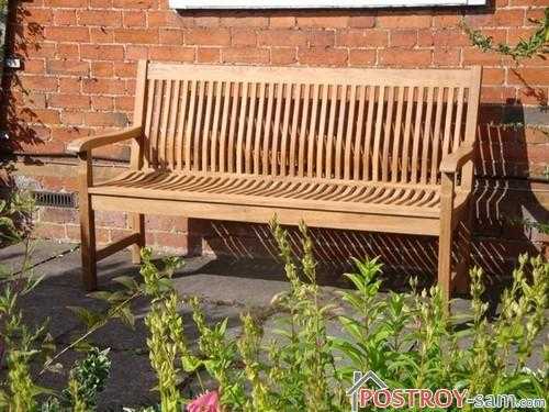 Изготавливаться деревянная скамейка должна из прочных пород дерева, которые устойчивы к гниению. К таким деревьям относится тик, вишня, орешник, лиственница, дуб и хвойные породы. Для того, чтобы придать скамейке большей красоты и защитить ее от всех насекомых, необходимо покрыть деревянную садовую скамейку краской или лаком. Стоимость такой скамейки зависит от того, из какой породы дерева она изготовлена.
