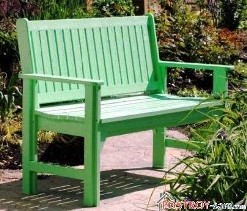 Самыми непритязательными и дешевыми являются пластиковые скамейки. К преимуществам таких скамеек относится их легкость, различные яркие расцветки и мобильность. Но такие скамейки не будут долго служить украшением вашего сада, так как пластик подвержен быстрому выгоранию и разрушению под действием прямых солнечных лучей. Помимо этого, пластик довольно хрупкий материал, который очень легко повредить.