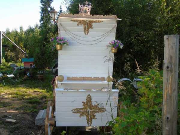 Идею нового туалета на даче, жена вынашивала почти год. Хотелось чего-то нового, нетривиального, такого чтобы ни у кого не было. И, в конце концов, решение задачи пришло. В мечте получался не только туалет, а настоящая, небольшая, туалетная комната. Осталось только уговорить мужа, реализовать идею. В начале года работа закипела. Закупили деревянных брусков, «вагонки» и приступили к строительству… кареты