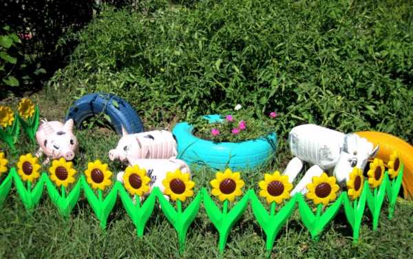 В интернете на сегодняшний день есть обилие фото красивого оформления участка: это и резиновые попугаи или хрюшки, пальмы из бутылок и т.п.