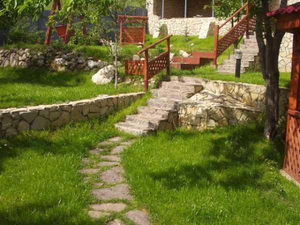 Когда они в порядке – участок сразу преображается. Если у Вас битые, сколотые плитки – лучше без сожаления распрощаться с ними, по крайней мере, на парадной зоне. Различного материала для укладки дорожек сейчас много. Но мы говорим о дешевом варианте. Тогда это может быть обычная серая плитка из бетона, сделанная собственными руками, с вкраплениями цветной гальки. Или даже цветная плитка, если Вы в цемент добавите красители. И вовсе почти бесплатно обойдется Вам дорожка из обычных серых камней, собранных на полях. Этот материал красив, долговечен и моден во все времена. Причем сделать такую дорожку по силам даже любой женщине. А, скажем, в зоне отдыха можно из более больших и плоских камней сделать пошаговую дорожку. Хороша и травяная тропинка, только ее нужно держать в рамках намеченной ширины и вовремя косить.