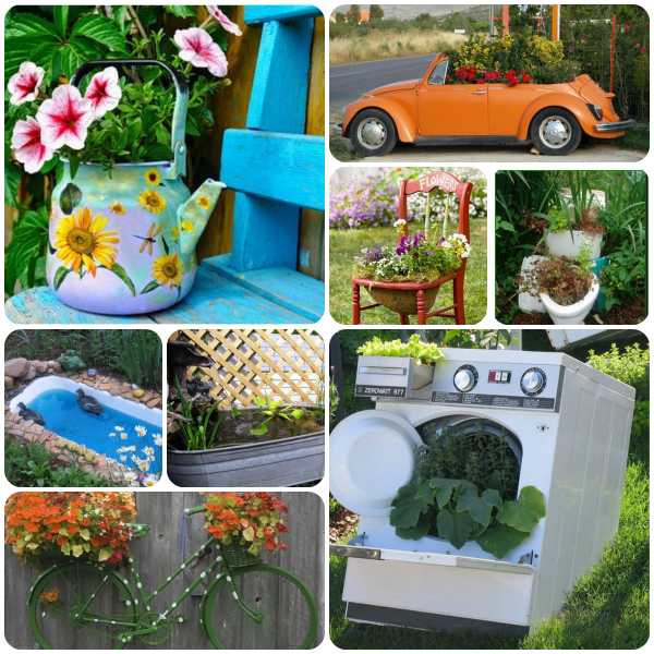 С помощью подручных средств, которых в арсенале дачника великое множество, можно попробовать воплотить в жизнь свою фантазию. В оформлении дачного участка могут пригодиться любые ненужные вещи, которыми уже не пользуются, а отправить на свалку рука не поднимается. Для этих целей подойдет и старая мебель, и остатки материалов после строительства, пустые бутылки, ведра и т.д.