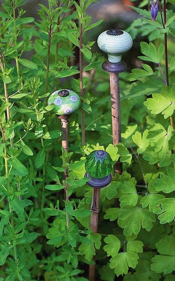 Из керамических дверных ручек сделайте аксессуар для цветника или украшение для опоры травянистых многолетников.