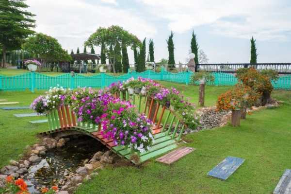 Выбором цвета можно регулировать степень визуализации перспективы. Пространство визуально кажется ближе и шире, если используют тона светлые. И напротив, темные тона сужают и удлиняют пространство. Красивое оформление дачного участка из подручных материалов фото: