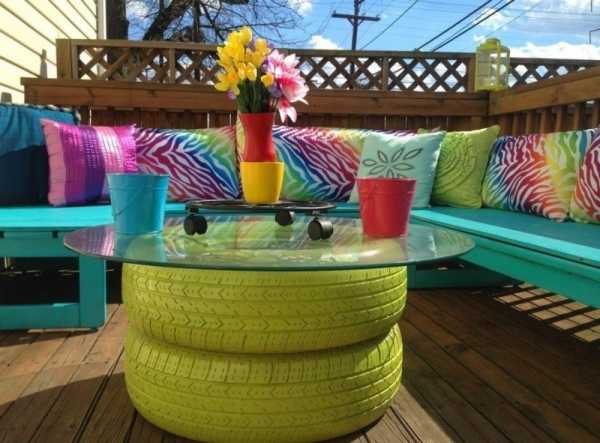 Во-вторых, можно использовать фантазию и старые, ненужные вещи. Например, из старых шин можно сделать удобный стул, из неработающего телевизора – столик. Бутылками можно украсить беседку или сделать из них оригинальную вазу для цветов.