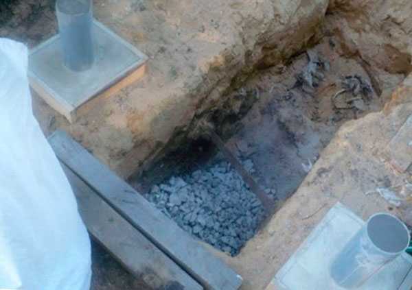 Фото траншеи к септику, частично засыпанной дренажом