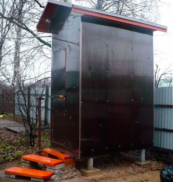 Среди материалов, можно упомянуть и ставший привычным металлопрофиль. Как и в предыдущем случае, собирается каркас постройки, а потом обшивается этим материалом. В принципе, этот вариант внимания заслуживает, но с практической стороны металл не лучший выбор.