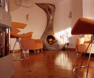 - В конце XX-го начале XXI-го века возник такой архитектурный стиль, как бионика, у которого, по сути, отсутствуют прямые линии и углы — все формы обтекаемы и максимально приближены к естественным природным условиям. Каждый из таких каминов, по сути, является произведением искусства, поэтому их цена достаточно высока и нет смысла монтировать такой отопитель в редко посещаемом помещении.