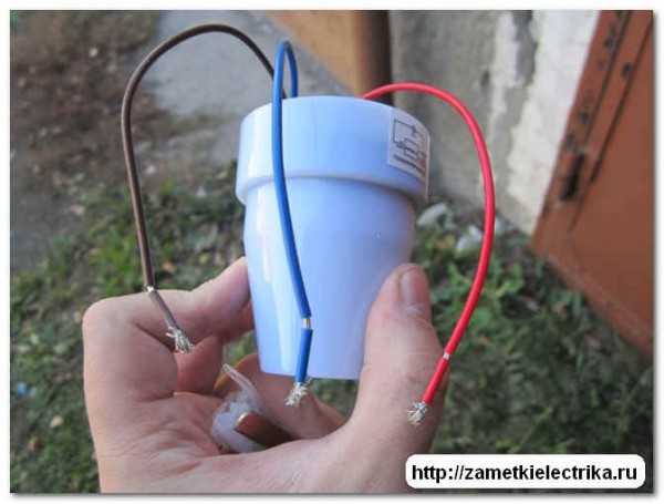 ΠΡΠ°ΠΊ, ΠΎΠΏΡΠ΅Π΄Π΅Π»Π΅Π½ΠΎ ΠΏΡΠ΅Π΄Π½Π°Π·Π½Π°ΡΠ΅Π½ΠΈΠ΅ ΠΈ ΠΏΡΠΈΠ½ΡΠΈΠΏ Π΄Π΅ΠΉΡΡΠ²ΠΈΡ ΡΠΎΡΠΎΡΠ΅Π»Π΅, ΠΏΠΎ ΡΡΡΠΈ Π²ΡΠΏΠΎΠ»Π½ΡΡΡΠ΅Π³ΠΎ ΡΡΠ½ΠΊΡΠΈΠΈ Π°Π²ΡΠΎΠΌΠ°ΡΠΈΡΠ΅ΡΠΊΠΎΠ³ΠΎ Π²ΡΠΊΠ»ΡΡΠ°ΡΠ΅Π»Ρ ΡΠ²Π΅ΡΠ°. ΠΡΡΡΠ΄Π° ΡΠ»Π΅Π΄ΡΠ΅Ρ ΠΏΡΠΎΡΡΠ°Ρ ΡΡ Π΅ΠΌΠ° ΠΏΠΎΠ΄ΠΊΠ»ΡΡΠ΅Π½ΠΈΡ: Π½Π° Π΄Π°ΡΡΠΈΠΊ ΠΏΠΎΠ΄Π°Π΅ΡΡΡ ΡΠ°Π·Π°, ΠΊΠΎΡΠΎΡΠ°Ρ ΡΡ ΠΎΠ΄ΠΈΡ ΠΈΠ· Π΄Π²ΡΡ Π²ΡΡ ΠΎΠ΄ΠΎΠ² ΠΈ ΠΏΠΎΡΡΡΠΏΠ°Π΅Ρ Π½Π° ΡΠ²Π΅ΡΠΈΠ»ΡΠ½ΠΈΠΊ ΠΈΠ»ΠΈ Π΄ΡΡΠ³ΠΎΠΉ ΠΎΡΠ²Π΅ΡΠΈΡΠ΅Π»ΡΠ½ΡΠΉ ΠΏΡΠΈΠ±ΠΎΡ. ΠΠΎΡΠΊΠΎΠ»ΡΠΊΡ ΡΡΡΡΠΎΠΉΡΡΠ²ΠΎ Π½ΡΠΆΠ΄Π°Π΅ΡΡΡ Π² ΠΏΠΈΡΠ°Π½ΠΈΠΈ, ΡΠΎ ΠΎΠ΄ΠΈΠ½ ΠΈΠ· ΠΊΠΎΠ½ΡΠ°ΠΊΡΠΎΠ² ΡΠ²Π»ΡΠ΅ΡΡΡ Π½ΡΠ»Π΅Π²ΡΠΌ. ΠΠ»Ρ ΠΏΠΎΠ²ΡΡΠ΅Π½ΠΈΡ Π±Π΅Π·ΠΎΠΏΠ°ΡΠ½ΠΎΡΡΠΈ ΠΏΡΠΈ ΡΠΊΡΠΏΠ»ΡΠ°ΡΠ°ΡΠΈΠΈ ΠΈΠ·Π΄Π΅Π»ΠΈΡ Π² ΠΈΠ΄Π΅Π°Π»Π΅ ΠΆΠ΅Π»Π°ΡΠ΅Π»ΡΠ½ΠΎ ΠΏΠΎΠ΄ΠΊΠ»ΡΡΠΈΡΡ Π·Π°Π·Π΅ΠΌΠ»Π΅Π½ΠΈΠ΅.