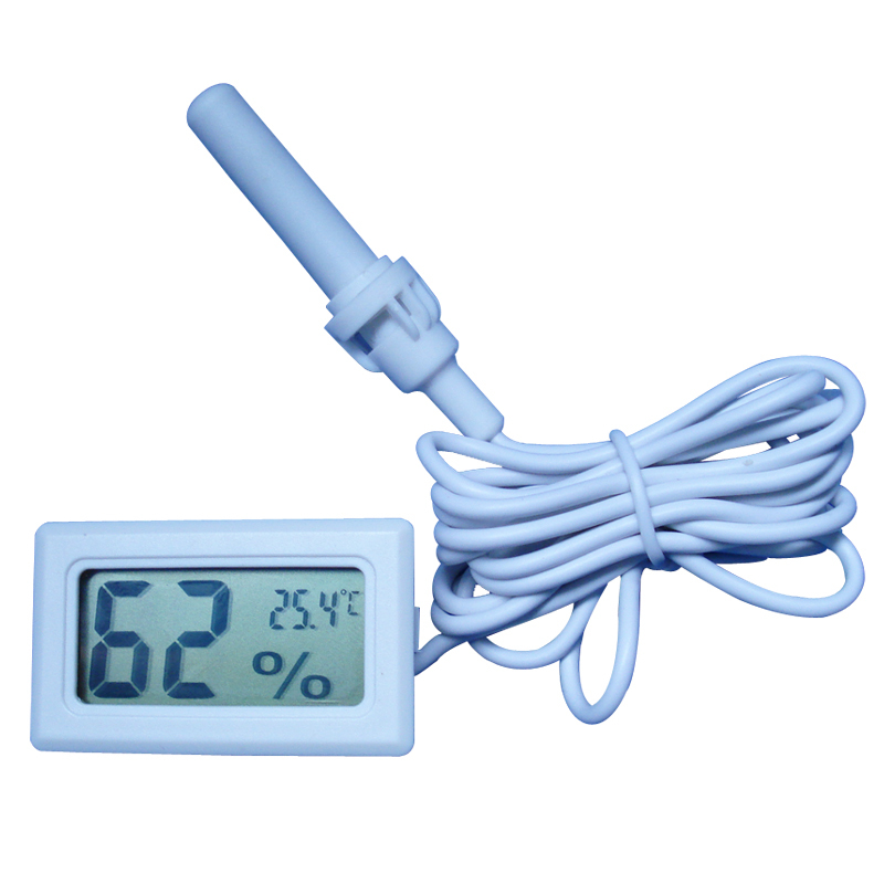 Электронные гигрометры зачастую дополнены еще и термометром, что позволяет производить замеры с высокой точностью. Для замеров влажности почвы тоже используют электронные гигрометры, представляющие собой 2 электрода, погружаемые в грунт. Влажность измеряется в зависимости от уровня токопроводимости земли.