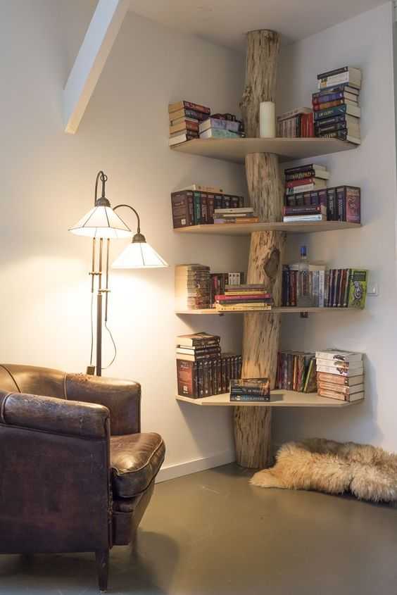 Это действительно невероятная идея, чтобы украсить угол вашей комнаты с такой деревянной книжной полкой. Это не только экономит пространство, но и делает вашу комнату более художественной.