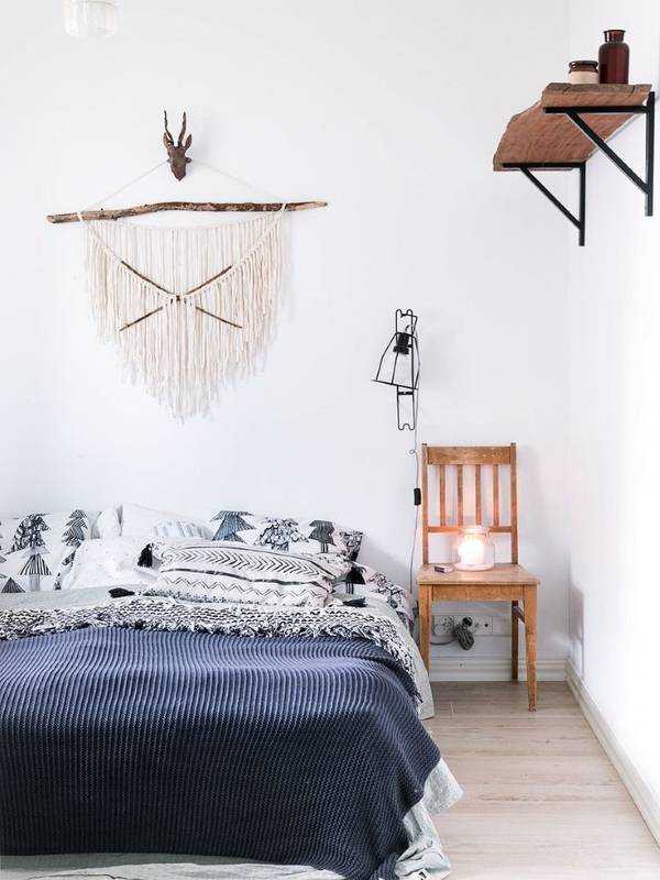 Великолепная и не теряющая актуальности деталь интерьера — ловец снов. Он помогает украсить стену спальни, а также избавить вас от плохих сновидений. Изготовить его самостоятельно очень просто. Для этого достаточно приобрести нитки необходимых цветов, а также бусины, перья и другие элементы, которые будут украшать вашу поделку.