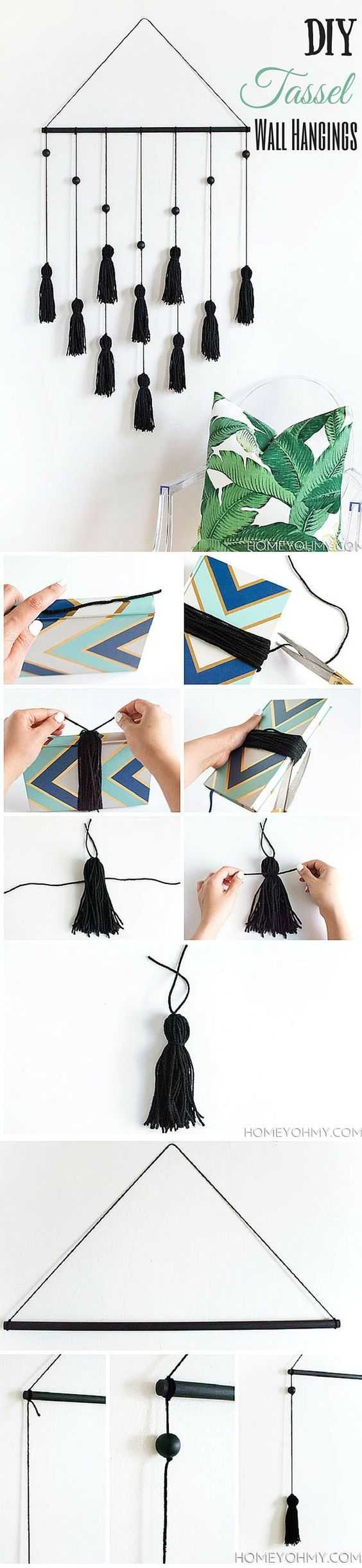 Декор стенНастенные поделки своими руками – эксклюзивный декор и отличный способ заполнить пустое место. Преимущество состоит в том, что вы сами выбираете каждую деталь — стиль, форму, цвет, материалы. В результате получаете именно то, что нужно. Украсьте стену композицией кисточек или очаровательной картиной из шерстяных ниток.