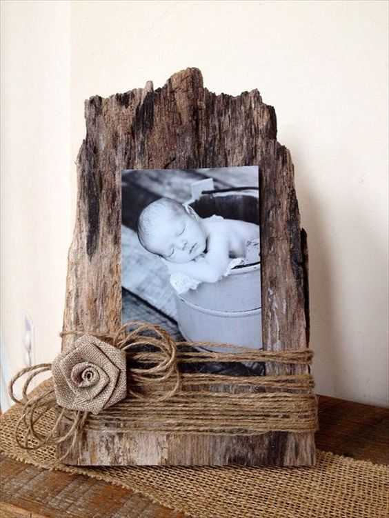 Рамки для декора своими рукамиПри помощи небольшой дощечки, пеньковой веревки и растительных элементов можно преобразить интерьер сделанной рамкой для фото своими руками. Она займет свое место на прикроватной тумбе или возле вазы с цветами. Такая поделка станет отличным подарком.