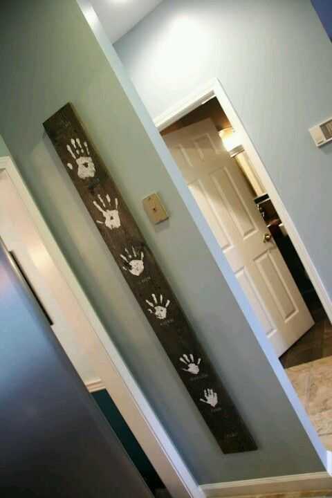 Декор своими рукамиОтличной идей декора дома своими руками станет декоративная дощечка с отпечатками ладошек. Для реализации идеи понадобиться дощечка, краска и хорошее настроение.