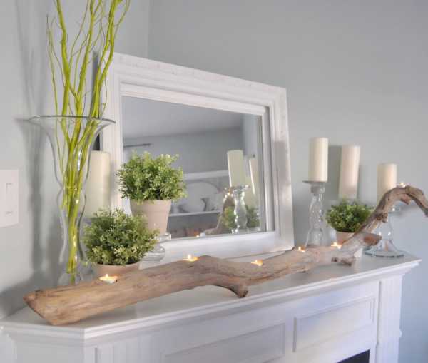 Декор прихожейОтличной идеей для декора жилища являются различные варианты композиций с применением веток и небольших пеньков. Они могут быть оформлены в деревянную рамку или служить каркасом для настенных полок.
