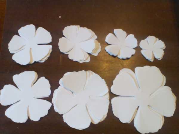 Если в ваши планы входит изготовление гирлянды из самодельных крупных цветов для потолка, лучше делать их объемными, а на стенах вполне можно ограничиться плоскими элементами декора.