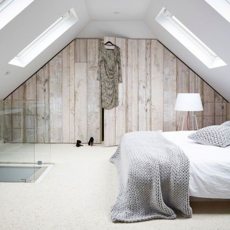 Не покрывайте темным лаком вагонку, которой обшит мансардный этаж. Это довольно распространенная ошибка многих хозяев. За счет насыщенного цвета и фактуры потолочная зона визуально приблизится и будет давить. Лучше окрасьте дерево в белый. Это неплохая идея для интерьеров скандинавском стиле.