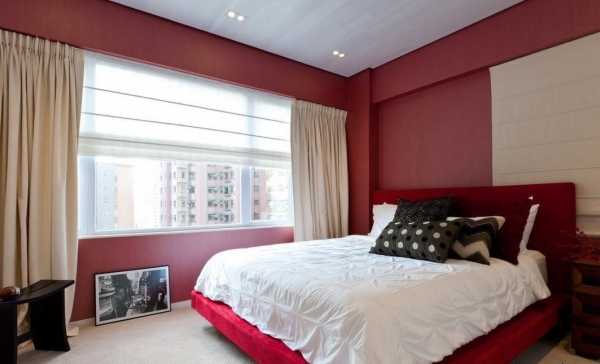 Например, стены, потолок и пол могут быть полностью белоснежными, но на пол можно положить красный или желтый ковер, кровать застелить ярким постельным бельем и повесить на стену красочную абстрактную картину.