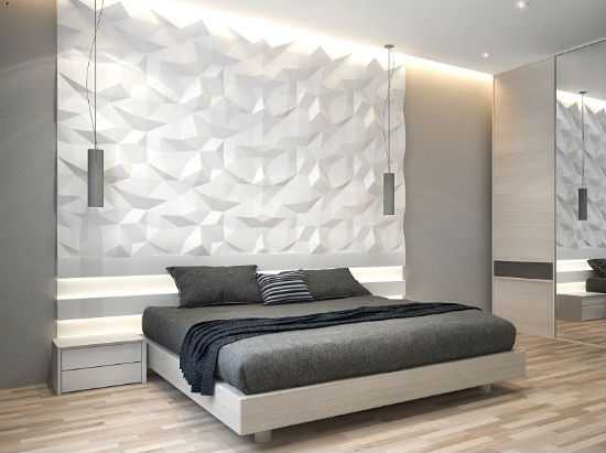 Декор спальни, фото текстурированных обоев с визуально объемным рисунком