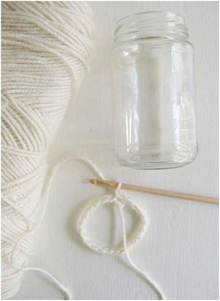 Из стеклянной банки, украшенной подручными средствами, получится красивая декоративная ваза для букетов.