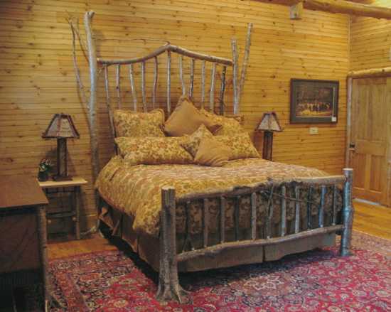 Спальня в рустикальном стиле с использованием декора из дерева в интерьереСветильники с использованием разных древесных элементов естественного происхождения — это уникальный элемент любого оформления, ведь его не найти в обычных магазинах, зато можно сделать на заказ или самостоятельно.
