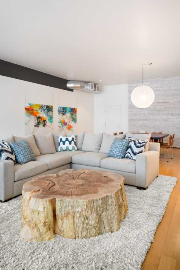 Дизайн с применением деревянных элементов невероятно популярен в наше время. Благодарить за это стоит, пожалуй, модную тенденцию — экологический стиль, распространенный сейчас. Основным трендом в этом направлении является изготовление деталей интерьера из частей деревьев, которые пришлось удалить по естественным причинам, например, гибели дерева, отмирания некоторых веток, выкорчевывания старых пней. Все это позволяет не вырубать новых деревьев, а также добавить особенный шарм в любой дом, ведь такие куски древесины несут на себе отпечаток времени (по спилам можно даже посчитать количество прожитых растением лет).