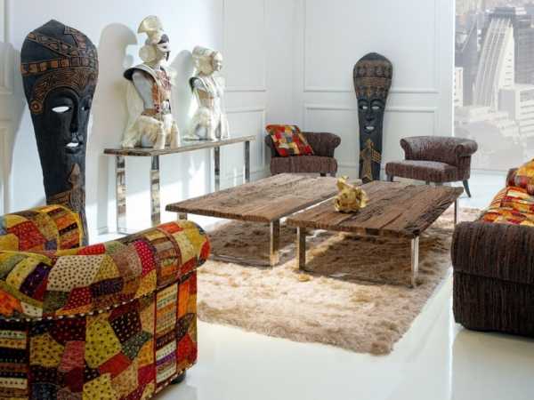 Вазы из древесины, этнические маски, миски и статуэтки, рамки для фото занимают достойное место на полках многих домов, оформленных в самых разных стилевых направлениях. Несколько вариантов таких аксессуаров представлены на следующих фотографиях.