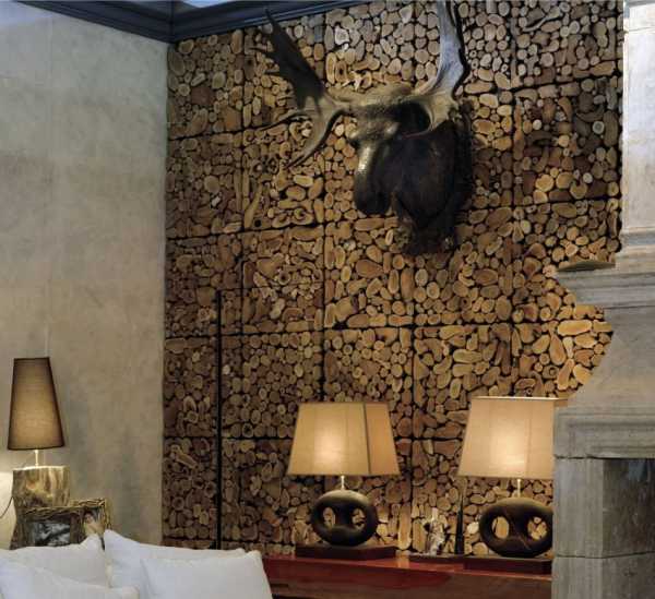 Оформить спилами можно, например, полностью всю стену, или же только ее фрагмент