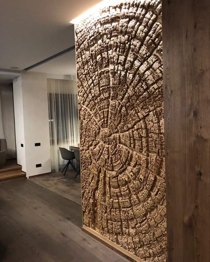 Более продвинутым вариантом отделки станет объемная фигура дерева. Вы вполне можете принести в дом самое настоящее растение, со стволом и ветками, и поставить его у стены. Красиво смотрятся в интерьерах лиственница, береза, дуб, клен.