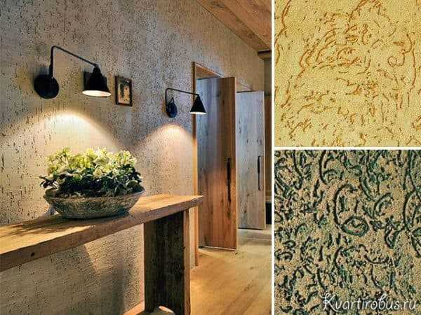 Цветовые и текстурные разновидности облицованных короедом поверхностей