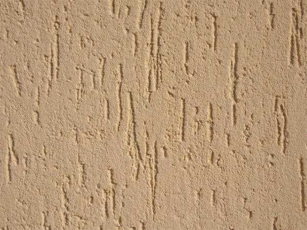 - Начинаем наносить равномерно штукатурку широким полутерком. Толщина зависит от толщины зернистости смеси (чаще всего это 2мм). Состав наносят полосами, если это вертикальный либо горизонтальный способ. Излишки материала снимают кельмой. Приблизительно через полчаса, пока смесь полностью не высохла, создают рисунок теркой из полиуретана. Он получается за счет того, что наполнитель, следуя за теркой, образует бороздки.