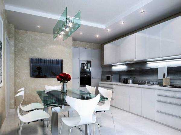 На следующем фото – доказательства наших слов о гладкой декоративной штукатурке на кухне в стиле минимализм или хай-тек.
