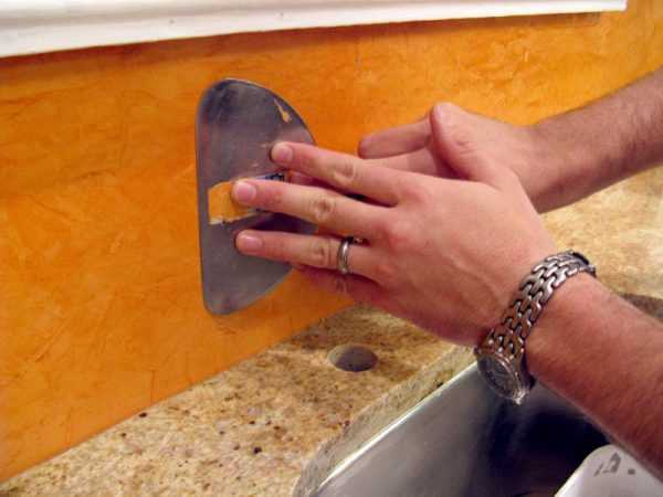 - Когда декоративная штукатурка в ванной комнате высохнет, наносится слой для защиты от попадания воды. Это может быть воск или лак. Это покрытие наносится в два захода специальной губкой. Лаком в обязательном порядке покрывают места, куда возможно прямое попадание воды.