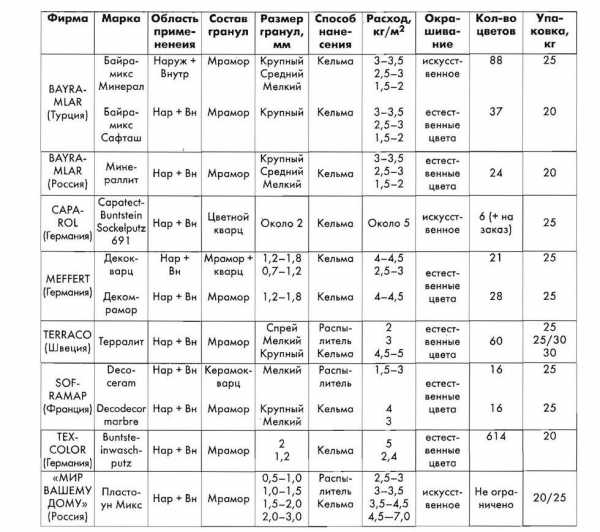 Технические характеристики декоративных штукатурок некоторых производителей