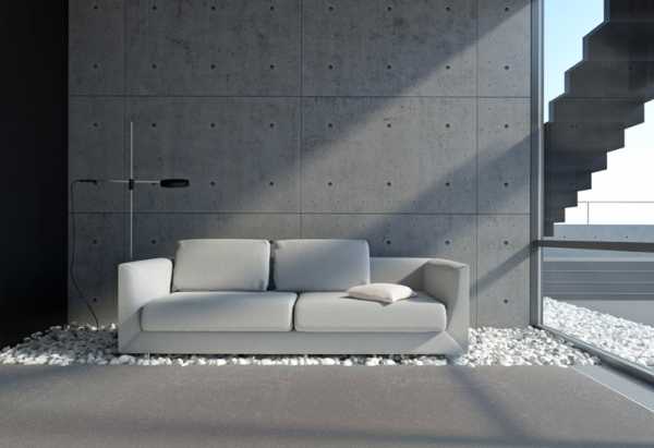 Самый распространенный способ получить трендовую стену под бетон с побелкой в гостиной, это использовать готовую бетонную стену. Белая стена под бетон конечно интересно, но у многих ли есть готовая бетонная стена? Тем не менее аналогичный эффект может быть достигнут с помощью специальной штукатурки. После нанесения она практически неотличима от простого бетона, с его характерными структурными дефектами.
